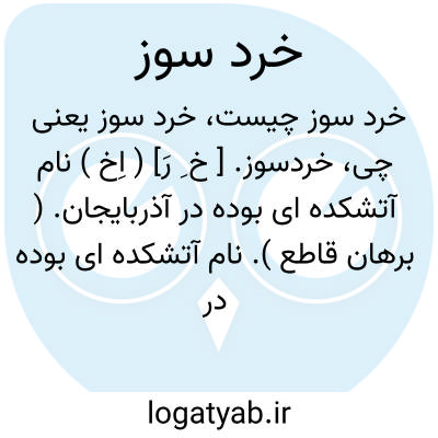 خردسوز. [ خ ِ رَ] ( اِخ ) نام آتشکده ای بوده در آذربایجان. ( برهان قاطع ). نام آتشکده ای بوده در آذربایجان بجهت آنکه عقل بدریافت آن نمیرسد و بعضی نوشته که به زبانی، خرد بمعنی گناه است. ( آنندراج ) ( غیاث اللغات ):