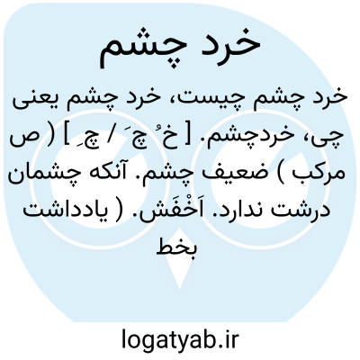 خردچشم. [ خ ُ چ َ / چ ِ ] ( ص مرکب ) ضعیف چشم. آنکه چشمان درشت ندارد. اَخْفَش. ( یادداشت بخط مؤلف ). || دارنده چشمان ریز.