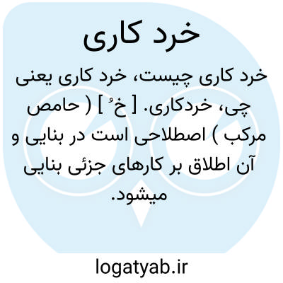 خردکاری. [ خ ُ ] ( حامص مرکب ) اصطلاحی است در بنایی و آن اطلاق بر کارهای جزئی بنایی میشود. جزئی کاری. کارهای کوچک در بنائی. || هر کار کوچک و متعلق به امری.