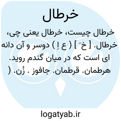 خرطال. [ خ َ ] ( ع اِ ) دوسر و آن دانه ای است که در میان گندم روید. هرطمان. قرطمان. جافوز. زُن. ( یادداشت بخط مؤلف ). تخمی است دوائی و آن در میان گندم روید و طبیعت آن معتدل است. ( برهان قاطع ).