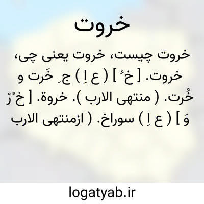خروت. [ خ ُ ] ( ع اِ ) ج ِ خَرت و خُرت. ( منتهی الارب ).