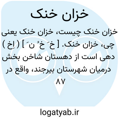 خزان خنک. [ خ َ خ ُ ن َ ] ( اِخ ) دهی است از دهستان شاخن بخش درمیان شهرستان بیرجند، واقع در 87 هزارگزی شمال باختری درمیان، این ده کوهستانی و معتدل و آب آن از قنات و محصول آن غلات و شغل اهالی آن زراعت و مالداری و راه آن مالرو است. ( از فرهنگ جغرافیائی ایران ج 9 ).