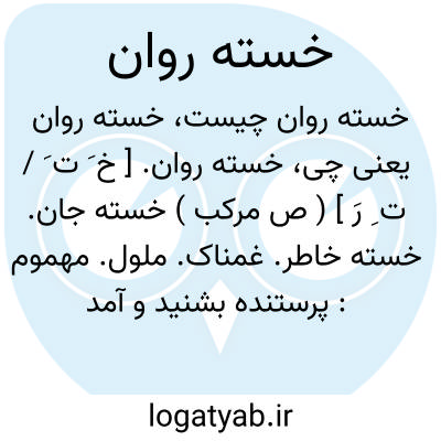 خسته روان. [ خ َ ت َ / ت ِ رَ ] ( ص مرکب ) خسته جان. خسته خاطر. غمناک. ملول. مهموم: