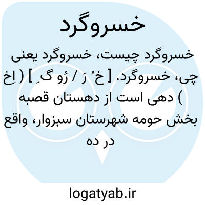 خسروگرد. [ خ ُ رَ / رُو گ ِ ] ( اِخ ) دهی است از دهستان قصبه بخش حومه شهرستان سبزوار، واقع در ده هزارگزی باختر سبزوار و دوهزارگزی شمال شوسه سبزوار به شاهرود. جلگه، معتدل، آب از قنات و محصول آن غلات و پنبه و زیره و شغل اهالی زراعت و راه اتومبیل رو است. از آثار باستانی بدانجا برجی است که از زمان قدیم ساخته شده و بنام میل خسروگرد معروف است. ( از فرهنگ جغرافیائی ایران ج 9 ). و رجوع به حبیب السیر چ 1 تهران ص 399 و «انجمن آرای ناصری » و «آنندراج » شود: شهرکی است از خراسان بنزدیک سبزوار. ( حدود العالم ).