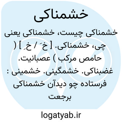 خشمناکی. [ خ َ / خ ِ ] ( حامص مرکب ) عصبانیت. غضبناکی. خشمگینی. خشمینی: