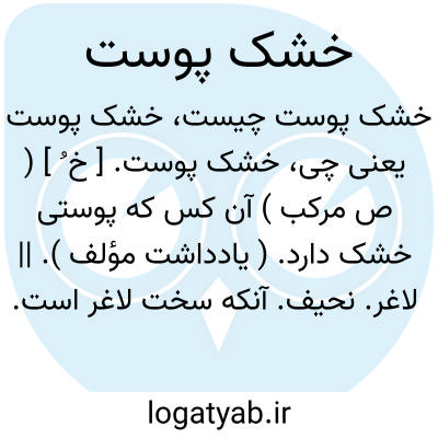 خشک پوست. [ خ ُ ] ( ص مرکب ) آن کس که پوستی خشک دارد. ( یادداشت مؤلف ). || لاغر. نحیف. آنکه سخت لاغر است. || هر میوه ای که پوستش خشک گردیده و از تازگی افتاده.