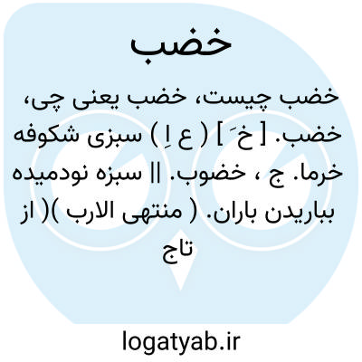 خضب. [ خ َ ] ( ع اِ ) سبزی شکوفه خرما. ج، خضوب. || سبزه نودمیده بباریدن باران. ( منتهی الارب )( از تاج العروس ) ( از لسان العرب ) ( از اقرب الموارد ). || سبزی که از درخت برآید در اول برگ آوردن. ( منتهی الارب ) ( از تاج العروس ) ( از لسان العرب ).