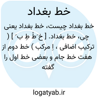 خط بغداد. [ خ َطْ طِ ب َ ] ( ترکیب اضافی، اِ مرکب ) خط دوم از هفت خط جام و بعضی خط اول را گفته اند. ( از برهان قاطع ):