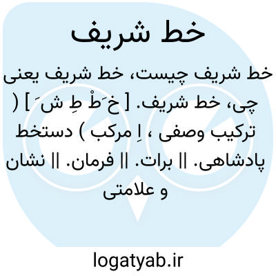 خط شریف. [ خ َطْ طِ ش َ ] ( ترکیب وصفی، اِ مرکب ) دستخط پادشاهی. || برات. || فرمان. || نشان و علامتی که شخص پادشاه بدست خوددر بالای فرمانها و بروات می گذارد. ( ناظم الاطباء ).