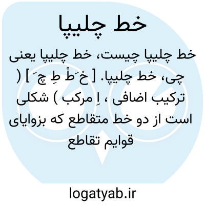 خط چلیپا. [ خ َطْ طِ چ َ ] ( ترکیب اضافی، اِ مرکب ) شکلی است از دو خط متقاطع که بزوایای قوایم تقاطع کرده باشد. ( آنندراج ). خط صلیبی: