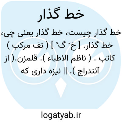خط گذار. [ خ َ گ ُ ] ( نف مرکب ) کاتب. ( ناظم الاطباء ). قلمزن.( از آنندراج ). || نیزه داری که نیزه کوچک در دست گیرد. ( ناظم الاطباء ). خطی گذار. ( آنندراج ).