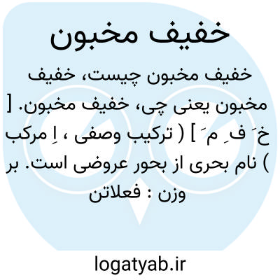 خفیف مخبون. [ خ َ ف ِ م َ ] ( ترکیب وصفی، اِ مرکب ) نام بحری از بحور عروضی است. بر وزن: فعلاتن مفاعلن فعلاتن مفاعلن چون:
