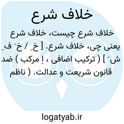 خلاف شرع. [ خ ِ / خ َ ف ِ ش َ ] ( ترکیب اضافی، اِ مرکب ) ضد قانون شریعت و عدالت. ( ناظم الاطباء ). ناروا. حرام. ناموافق عدالت. ( یادداشت بخط مؤلف ).