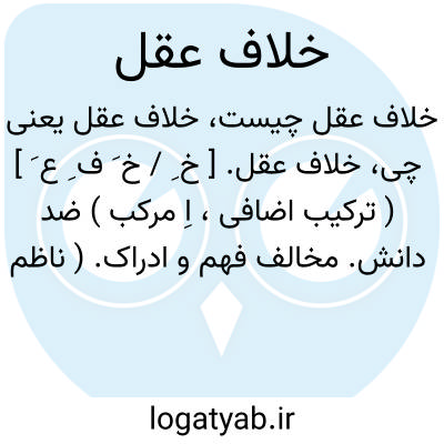 خلاف عقل. [ خ ِ / خ َ ف ِ ع َ ] ( ترکیب اضافی، اِ مرکب ) ضد دانش. مخالف فهم و ادراک. ( ناظم الاطباء ). || ضد قواعد عقلانی. ضد قواعد عقل. ( یادداشت بخط مؤلف ). نامعقول. غیرخردمندانه.