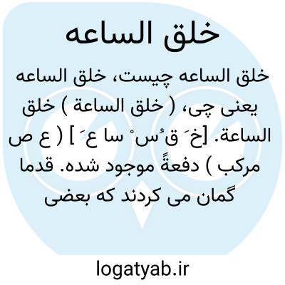 ( خلق الساعة ) خلق الساعة. [خ َ ق ُس ْ سا ع َ ] ( ع ص مرکب ) دفعةً موجود شده. قدما گمان می کردند که بعضی حشرات خلق الساعة یعنی بی وسائل تناسل دفعه موجود می شوند. ( از کشاف اصطلاحات فنون ).