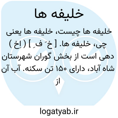 خلیفه ها. [ خ َ ف ِ ] ( اِخ ) دهی است از بخش گوران شهرستان شاه آباد، دارای 150 تن سکنه. آب آن از چشمه، محصول آن غلات دیم و لبنیات. شغل اهالی زراعت و گله داری و راه مالرو. اهالی از تیره ٔاسپری قلخانی اند. ( از فرهنگ جغرافیایی ایران ج 5 ). خلیفه ها. [ خ َ ف ِ ] ( اِخ ) دهی است از دهستان تراکمه بخش کنگان شهرستان بوشهر، دارای 182 تن سکنه. آب آن از قنات و محصول آن غلات و تنباکو و انار و شغل اهالی زراعت است. ( از فرهنگ جغرافیایی ایران ج 7 ).