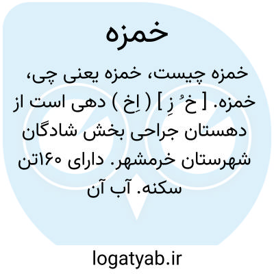 خمزه. [ خ ُ زِ ] ( اِخ ) دهی است از دهستان جراحی بخش شادگان شهرستان خرمشهر. دارای 160تن سکنه. آب آن از رودخانه جراحی و محصول آن غلات است. شغل اهالی زراعت و حشم داری. راه اتومبیل رو و ساکنان آنجا از طایفه مقدم اند. ( از فرهنگ جغرافیایی ایران ج 6 ).