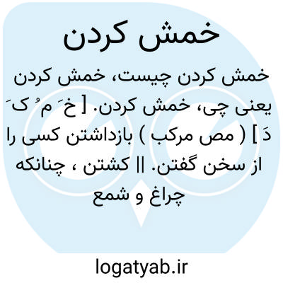 خمش کردن. [ خ َ م ُ ک َ دَ ] ( مص مرکب ) بازداشتن کسی را از سخن گفتن. || کشتن، چنانکه چراغ و شمع را. خموش ساختن. || خاموش شدن. سخن نگفتن: گفت: تش خمش کنید من میخواهم که... ( فیه مافیه ). خمش کرد و هیچ نگفت... ( فیه مافیه ).
