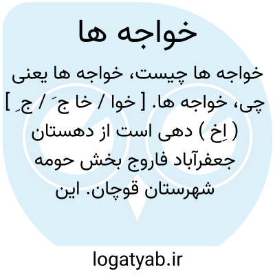 خواجه ها. [ خوا / خا ج َ / ج ِ ] ( اِخ ) دهی است از دهستان جعفرآباد فاروج بخش حومه شهرستان قوچان. این دهکده در جلگه قرار دارد با آب و هوای معتدل و 358 تن سکنه. آب آن از قنات و محصول آن غلات و انگور و شغل اهالی زراعت و مالداری و قالیچه بافی است. راه اتومبیل رو است. ( از فرهنگ جغرافیایی ایران ج 9 ).