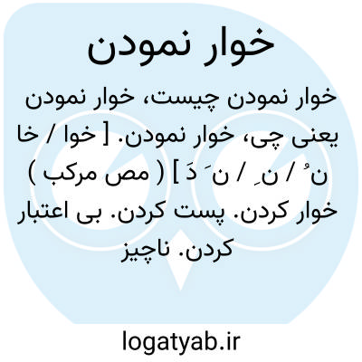 خوار نمودن. [ خوا / خا ن ُ / ن ِ / ن َ دَ ] ( مص مرکب ) خوار کردن. پست کردن. بی اعتبار کردن. ناچیز کردن. || ذلیل کردن. اذلال. اخزاء. استحقار. استصغار. ( یادداشت بخط مؤلف ).