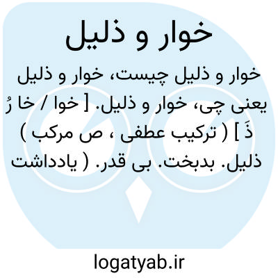 خوار و ذلیل. [ خوا / خا رُ ذَ ] ( ترکیب عطفی، ص مرکب ) ذلیل. بدبخت. بی قدر. ( یادداشت بخط مؤلف ).