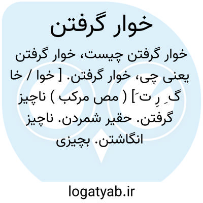 خوار گرفتن. [ خوا / خا گ ِ رِ ت َ] ( مص مرکب ) ناچیز گرفتن. حقیر شمردن. ناچیز انگاشتن. بچیزی نیاوردن. ( یادداشت بخط مؤلف ):