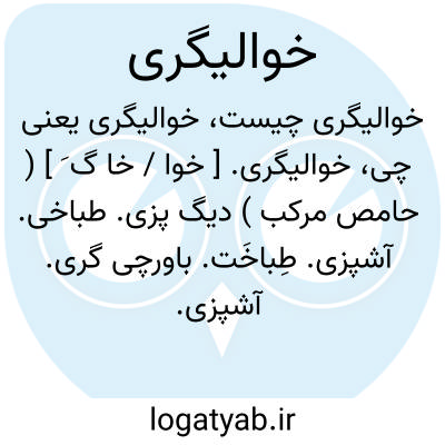 خوالیگری. [ خوا / خا گ َ ] ( حامص مرکب ) دیگ پزی. طباخی. آشپزی. طِباخَت. باورچی گری. آشپزی. خوراک پزی. خوردی پزی. ( یادداشت بخط مؤلف ):