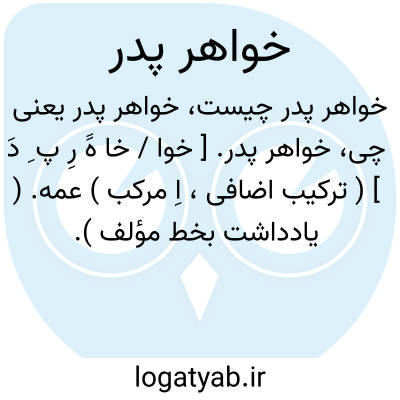خواهر پدر. [ خوا / خا هََ رِ پ ِ دَ ] ( ترکیب اضافی، اِ مرکب ) عمه. ( یادداشت بخط مؤلف ).