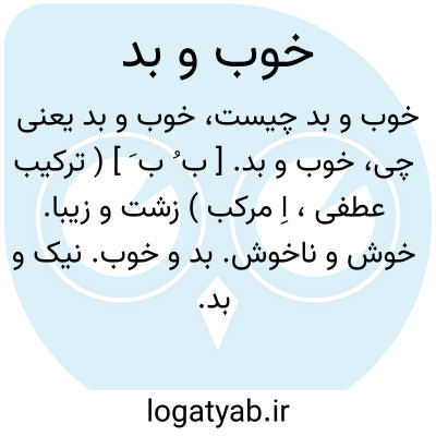 خوب و بد. [ ب ُ ب َ ] ( ترکیب عطفی، اِ مرکب ) زشت و زیبا. خوش و ناخوش. بد و خوب. نیک و بد.