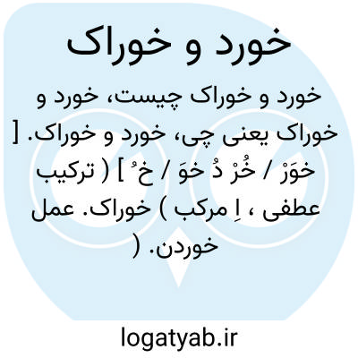 خورد و خوراک. [ خوَرْ / خُرْ دُ خوَ / خ ُ ] ( ترکیب عطفی، اِ مرکب ) خوراک. عمل خوردن. ( یادداشت مؤلف ). غذا. آنچه تغذیه را بکار است.