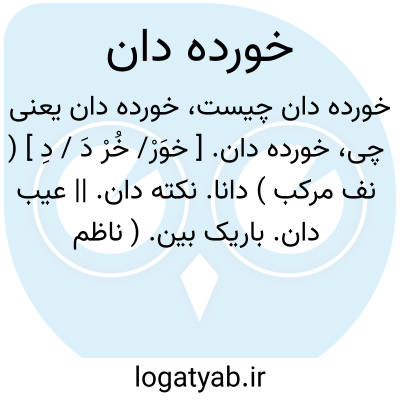 خورده دان. [ خوَرْ/ خُرْ دَ / دِ ] ( نف مرکب ) دانا. نکته دان. || عیب دان. باریک بین. ( ناظم الاطباء ):