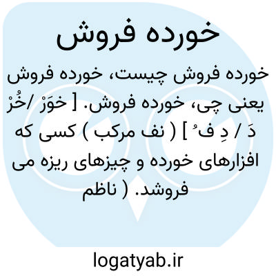 خورده فروش. [ خوَرْ /خُرْ دَ / دِ ف ُ ] ( نف مرکب ) کسی که افزارهای خورده و چیزهای ریزه می فروشد. ( ناظم الاطباء ). خرده فروش.