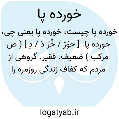 خورده پا. [ خوَرْ / خُرْ دَ / دِ ] ( ص مرکب ) ضعیف. فقیر. گروهی از مردم که کفاف زندگی روزمره را بسختی دارند. خرده پا.