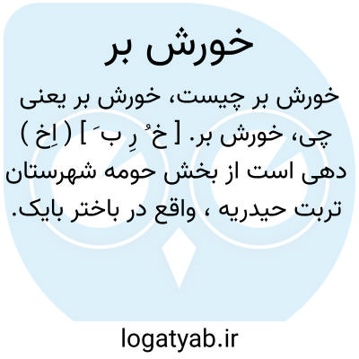 خورش بر. [ خ ُ رِ ب َ ] ( اِخ ) دهی است از بخش حومه شهرستان تربت حیدریه، واقع در باختر بایک. این دهکده در دامنه کوه قرار دارد با آب وهوای معتدل و 336 تن سکنه. آب آن از چشمه و محصول آن غلات و پنبه. شغل اهالی زراعت و قالیچه و کرباس بافی. راه مالرو است. ( از فرهنگ جغرافیایی ایران ج 9 ).