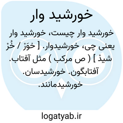 خورشیدوار. [ خوَرْ / خُرْ شیدْ ] ( ص مرکب ) مثل آفتاب. آفتابگون. خورشیدسان. خورشیدمانند. خورشیدفام: