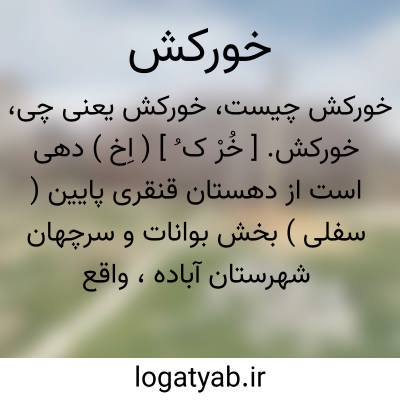 خورکش. [ خُرْ ک ُ ] ( اِخ ) دهی است از دهستان قنقری پایین ( سفلی ) بخش بوانات و سرچهان شهرستان آباده، واقع در 8هزارگزی خاور شوسه شیراز به اصفهان. این ده کوهستانی و سردسیر با 257 تن سکنه است. آب آن از قنات و محصول آن غلات و حبوبات و میوه می باشد.شغل اهالی زراعت و باغبانی و از صنایع دستی قالی بافی. راه مالرو است. ( از فرهنگ جغرافیایی ایران ج 8 ).