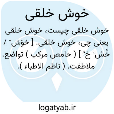خوش خلقی. [ خوَش ْ / خُش ْ خ ُ ] ( حامص مرکب ) تواضع. ملاطفت. ( ناظم الاطباء ).