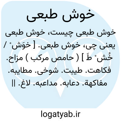 خوش طبعی. [ خوَش ْ / خُش ْ طَ ] ( حامص مرکب ) مزاح. فکاهت. طیبت. شوخی. مطایبه. مفاکهة. دعابه. مداعبه. لاغ. || خوشدلی. خوشحالی: