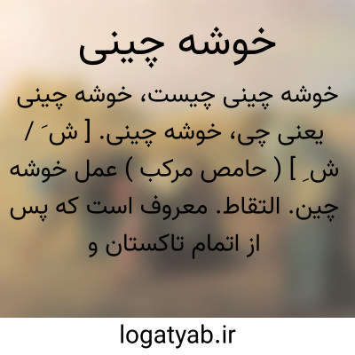 خوشه چینی گردآوری محصول جا مانده و پراکنده در کشتزار، پس از برداشت محصول اصلی است. خوشه چین آنکه پس از درو کردن کشت زار جو و گندم و جمع آوری حاصل، تک خوشه هایی که در آنجا مانده برای خویشتن جمع می کند. گاه در نوشته های ادبی خوشه چین کسی است که از حاصل کار یا دانش یا هنر یا خرمن کسی اندکی برگیرد، که از هر جا برای خود چیزی اندوخته کند.