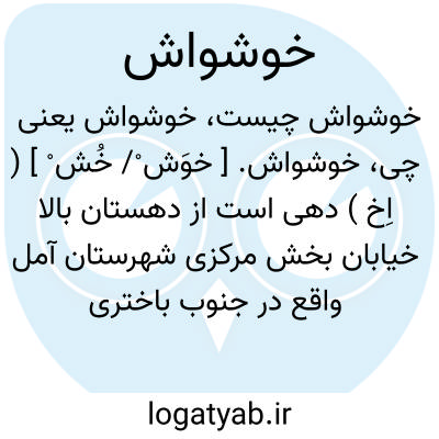 خوشواش. [ خوَش ْ/ خُش ْ ] ( اِخ ) دهی است از دهستان بالا خیابان بخش مرکزی شهرستان آمل واقع در جنوب باختری آمل، کوهستانی و سردسیر و دارای 240 تن سکنه و راه مالرو است. زمستان اهالی بحدود تسکاینی و کاسمده و اسکومحله و میخدان و چندر می روند. ( از فرهنگ جغرافیایی ایران ج 3 ).