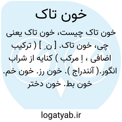 خون تاک. [ ن ِ ] ( ترکیب اضافی، اِ مرکب ) کنایه از شراب انگور.( آنندراج ). خون رز. خون خم. خون بط. خون دختر رز.