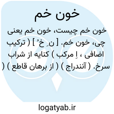 خون خم. [ ن ِ خ ُ ] ( ترکیب اضافی، اِ مرکب ) کنایه از شراب سرخ. ( آنندراج ) ( از برهان قاطع ) ( از ناظم الاطباء ). خون شیشه. خون قرابه. خون صراحی. خون قدح. خون بط. خون ناموس. ( از آنندراج ).