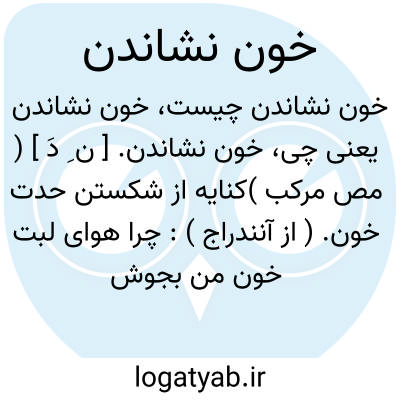 لغت نامه دهخدا خون نشاندن. [ ن ِ دَ ] ( مص مرکب )کنایه از شکستن حدت خون. ( از آنندراج ): چرا هوای لبت خون من بجوش آورداگر نشاندن خون از خواص عناب است.ظهیر فاریابی ( از آنندراج ).