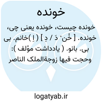 خونده. [ خُن ْ دَ / دِ ] ( اِ )خانم. بی بی. بانو. ( یادداشت مؤلف ): وحجت فیها زوجةالملک الناصر المسماة بالخونده و هی بنت السلطان المعظم محمد اوزبک ملک خوارزم. ( از رحله ابن بطوطه ).