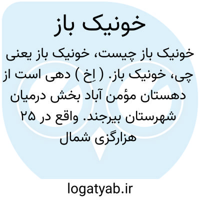 خونیک باز. ( اِخ ) دهی است از دهستان مؤمن آباد بخش درمیان شهرستان بیرجند. واقع در 25 هزارگزی شمال باختری درمیان. ( از فرهنگ جغرافیایی ایران ج 9 ).