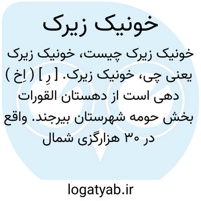 خونیک زیرک. [ رِ ] ( اِخ ) دهی است از دهستان القورات بخش حومه شهرستان بیرجند. واقع در 30 هزارگزی شمال خاوری بیرجند. ( از فرهنگ جغرافیایی ایران ج 9 ).