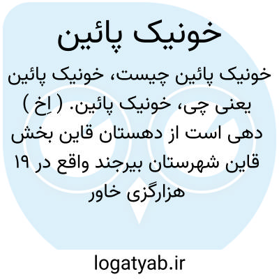 خونیک پائین. ( اِخ ) دهی است از دهستان قاین بخش قاین شهرستان بیرجند واقع در 19 هزارگزی خاور شوسه عمومی قاین به بیرجند. ( از فرهنگ جغرافیایی ایران ج 9 ).