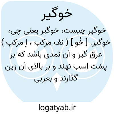 خوگیر. [ خُو ] ( نف مرکب، اِ مرکب ) عرق گیر و آن نمدی باشد که بر پشت اسب نهند و بر بالای آن زین گذارند و بعربی لبد گویند. نمد زین. ( از آنندراج ) ( از ناظم الاطباء ). || اسب آهسته رو. || پالان. || پرکننده و آگنده کننده زین. ( ناظم الاطباء ).