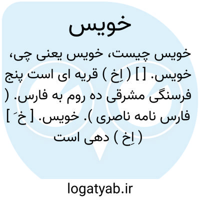 خویس. [ خ َ ] ( اِخ ) دهی است از دهستان حسین آباد بخش شوش شهرستان دزفول، واقع در 15 هزارگزی جنوب شوش و 6 هزارگزی باختری راه اهواز به دزفول. این دهکده در دشت قرار دارد با آب و هوای مناطق گرمسیری. آب آن از رودخانه دز و محصول آن غلات و برنج و کنجد. شغل اهالی زراعت و راه مالرو و در تابستان می توان اتومبیل برد. ( از فرهنگ جغرافیایی ایران ج 6 ).