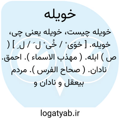 خویله. [ خوَی ْ / خُی ْ ل َ / ل ِ ] ( ص ) ابله. ( مهذب الاسماء ). احمق. نادان. ( صحاح الفرس ). مردم بیعقل و نادان و احمق را گویند بیشتر این لفظ را در محل قدح و دشنام استعمال کنند. ( برهان قاطع ):